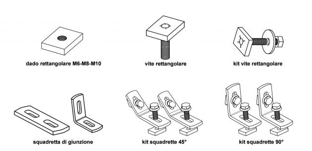 Accessori per profilati in acciaio: -viti -piastre -squadrette