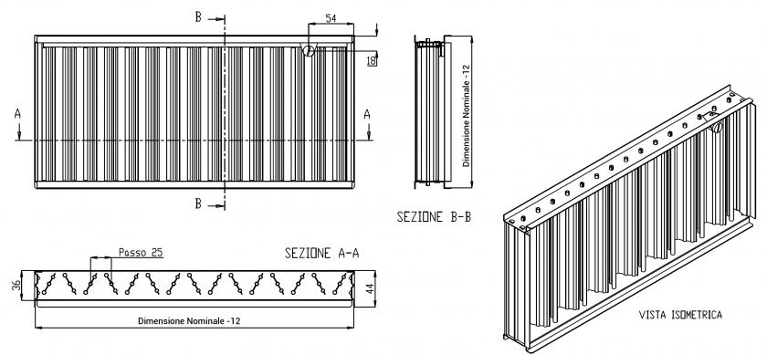 Dimensioni massime L x H per costruzione in unico pezzo 1000 mm x 600 mm. L’istallazione avviente direttamente sul collo della bocchetta o della griglia.