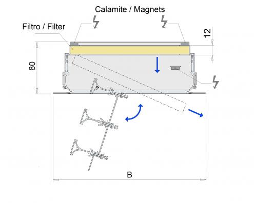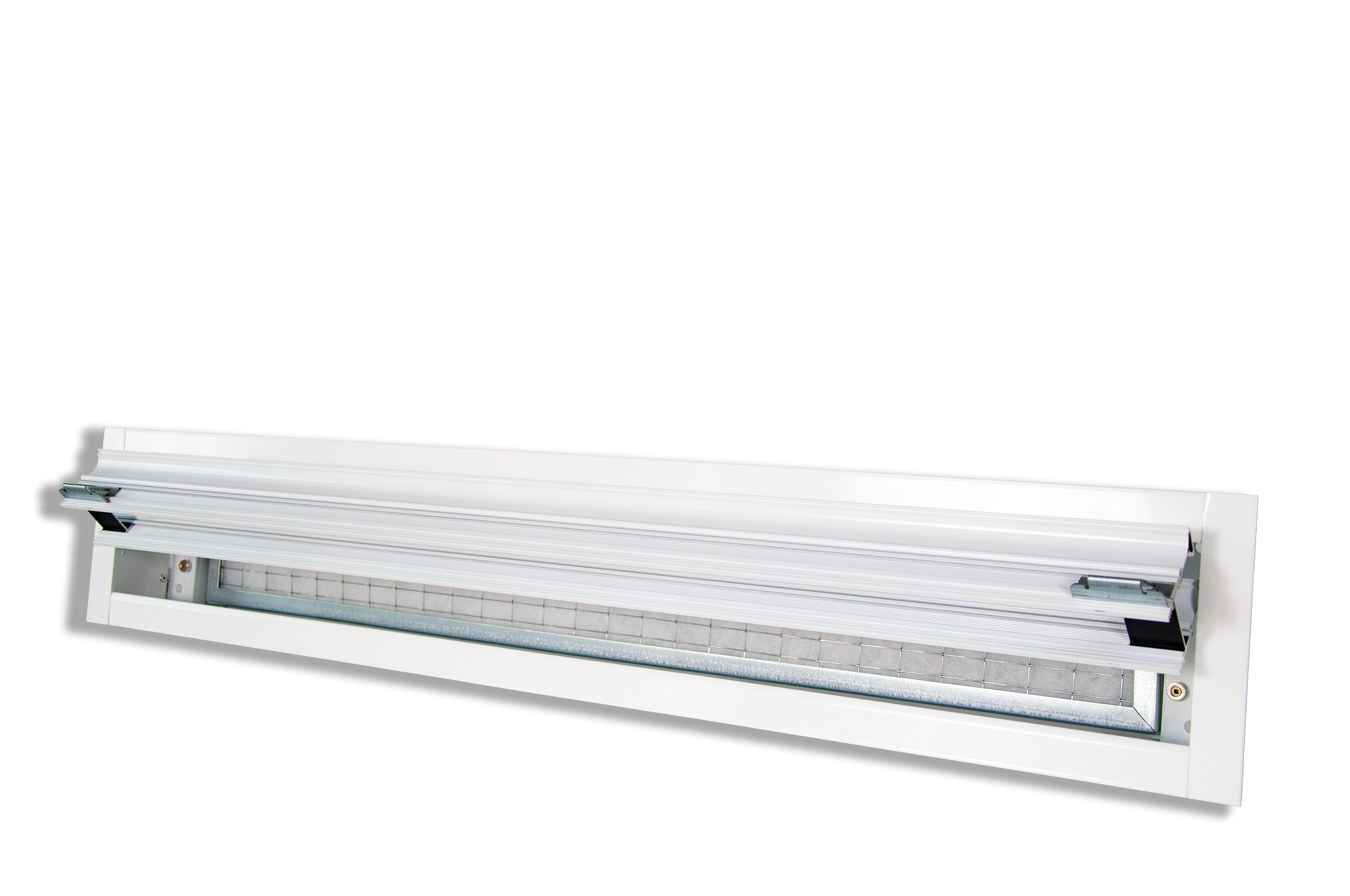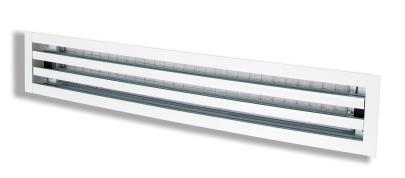 Sono costruiti a mezzo di profili in alluminio estruso lavorati in modo da ottenere un design altamente aerodinamico e esteticamente gradevole, con lunghezze standard di 800-1000-1500-2000 mm per minimo 3 e massimo 4 feritoie. Verniciatura standard del diffusore RAL 9016, a richiesta può essere verniciato con altri colori con polveri a base di resine epossidiche posate elettrostaticamente ed essiccate al forno. Questo tipo di verniciatura è resistente ad eventuali urti e abrasioni, e mantiene inalterate nel tempo le caratteristiche estetiche. Il fissaggio del diffusore al plenum è effettuato mediante ponti di montaggio non in vista. Il diffusore è provvisto di apposite linguette all’interno del pacco alettato che permettono di aprire lo stesso a libro per effettuare la sostituzione del filtro senza la necessità di dover smontare tutto il diffusore.