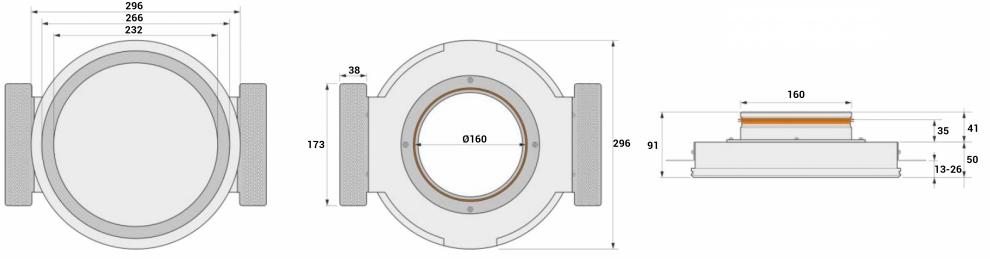 Installazione: il montaggio può esser fatto sia su controsoffitti ad una lastra che a due lastre, in quanto questi diffusori hanno delle staffe laterali regolabili in altezza che vanno in appoggio nella parte interna del cartongesso. Possono esser connessi sia al tubo flessibile, che al tubo in lamiera oppure ad un plenum per agevolare l'installazione.