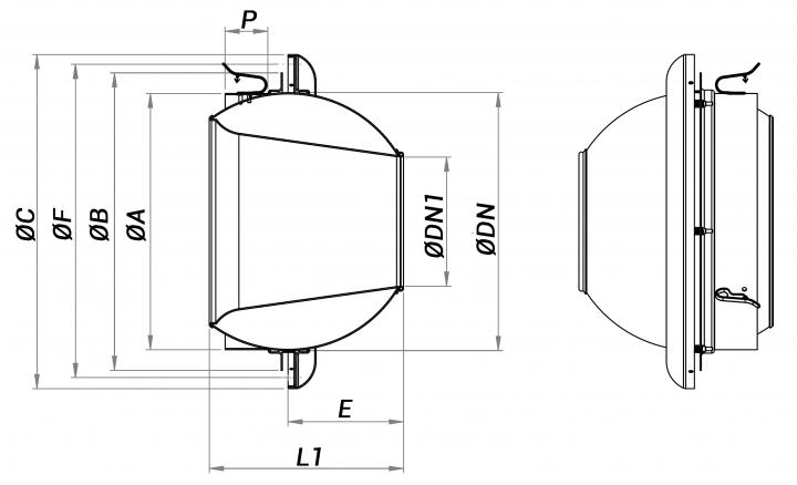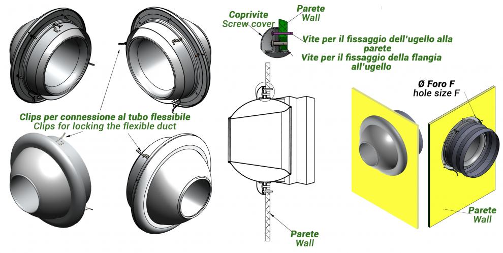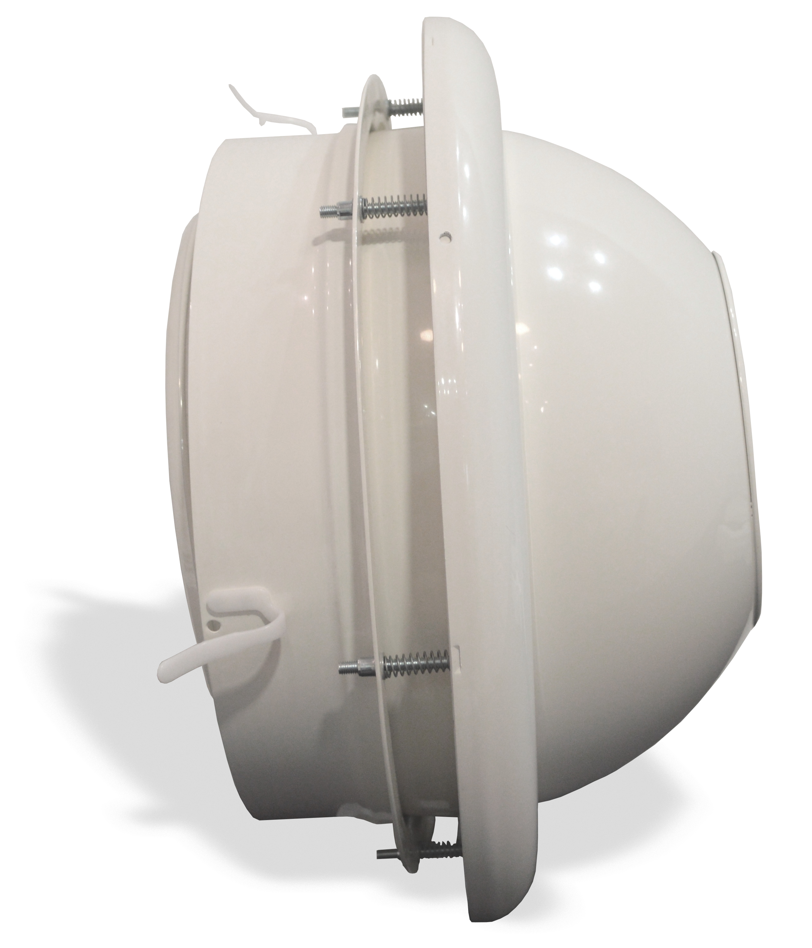 EDU/F Diffusori a ugello orientabili a lunga gittata comprensivi di coprighiera e connessione per tubo flessibile o canale circolare rigido.