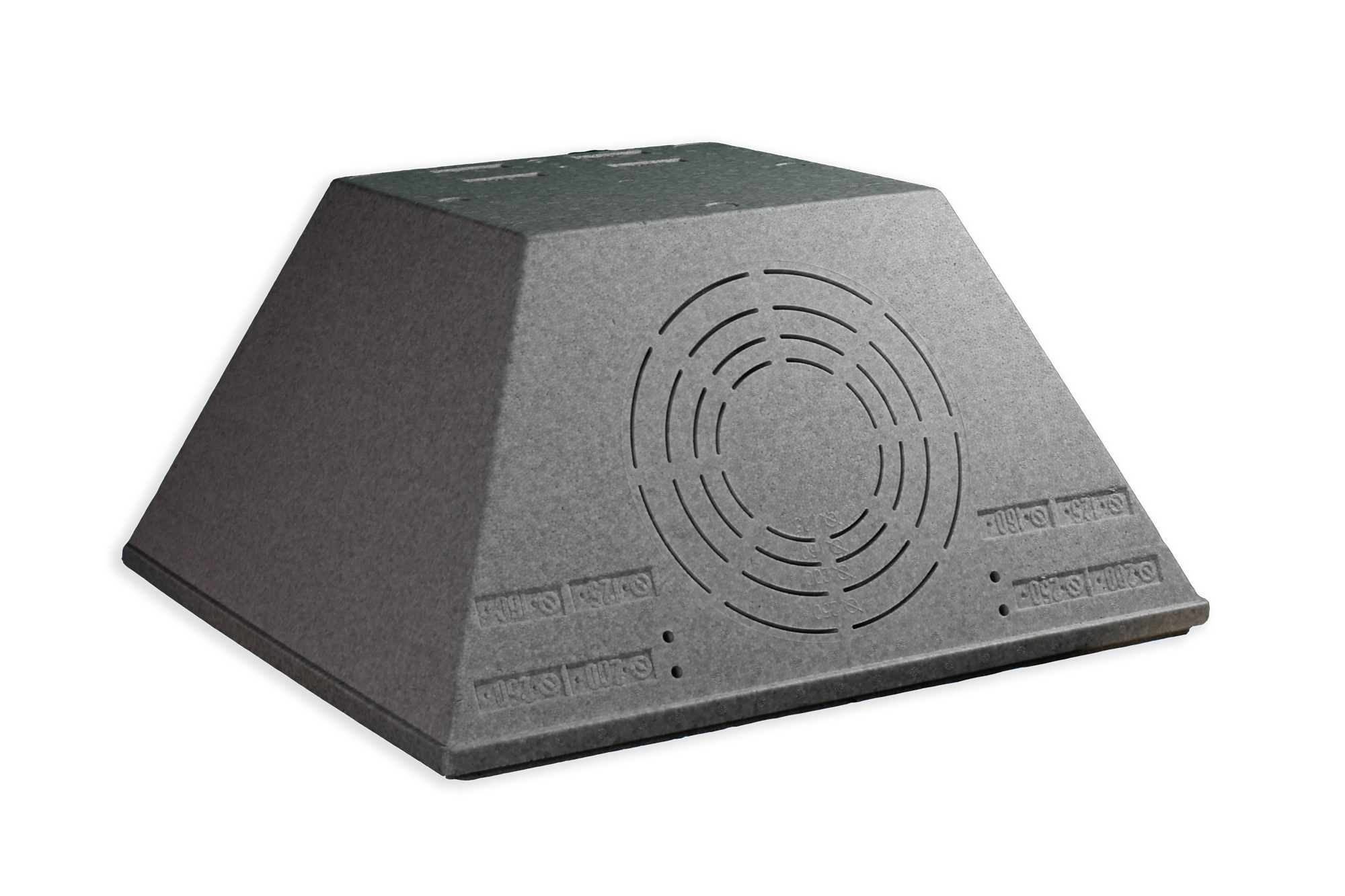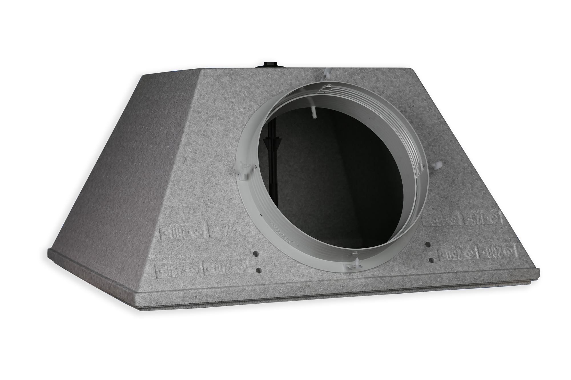 Plenum realizzato in polistirene stampato con densità 45 kg/mc, ignifugo classe 1 e cristallizzato internamente.