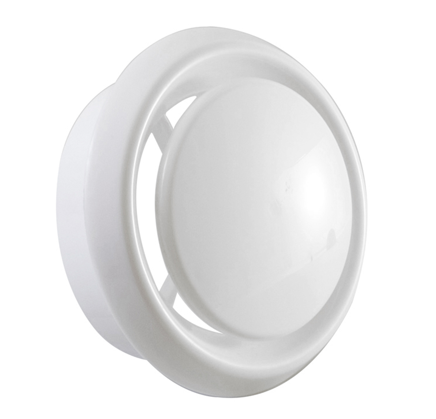 Valvole di mandata e ripresa costruite ABS di colore bianco RAL 9010, con cono centrale regolabile.