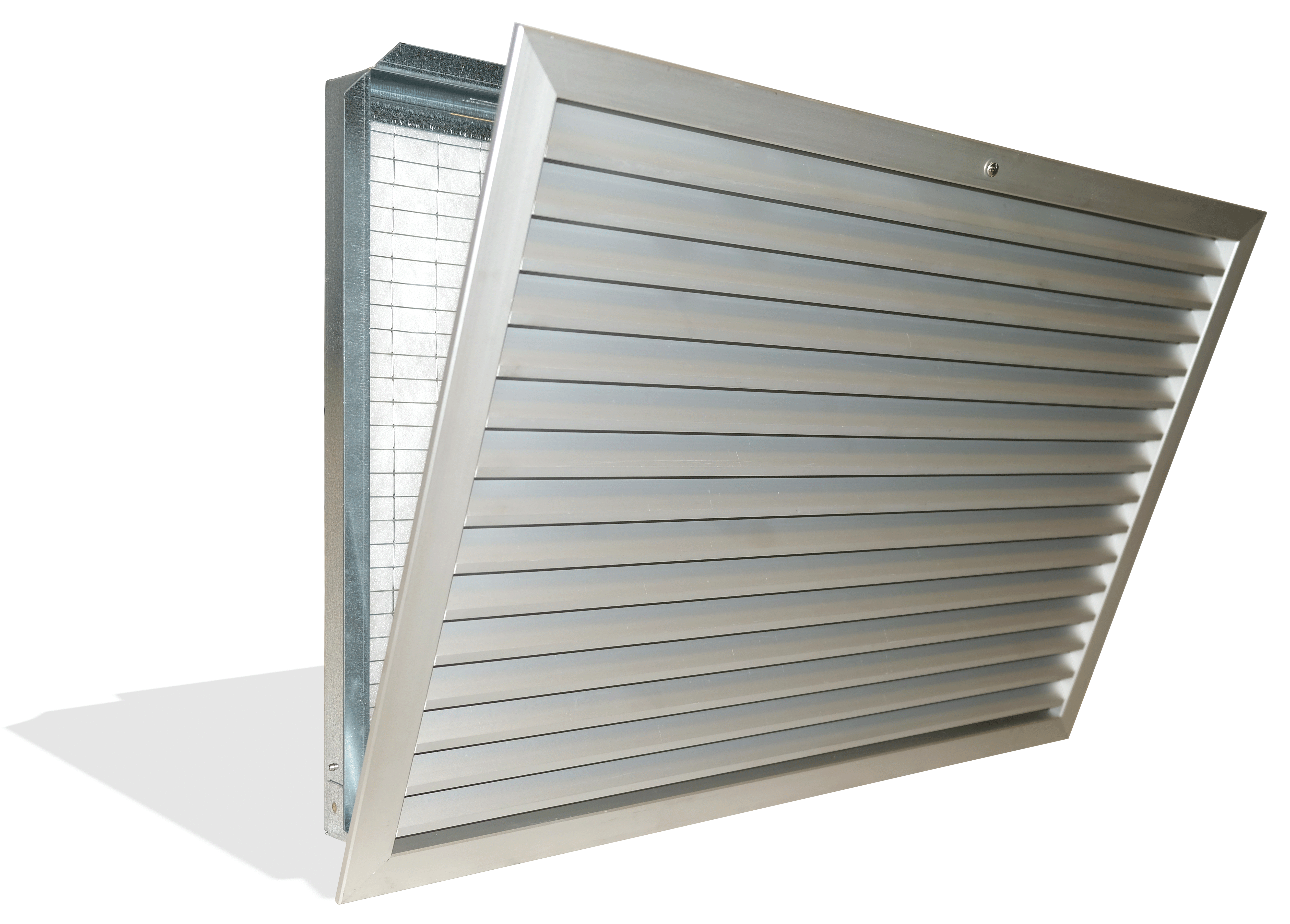 Griglie per la ripresa dell’aria costruite con alette orizzontali fisse ed inclinate a 45°, con l’inserimento di uno speciale profilo o controtelaio che permette l’alloggiamento di un filtro piano per polveri grossolane e fini.