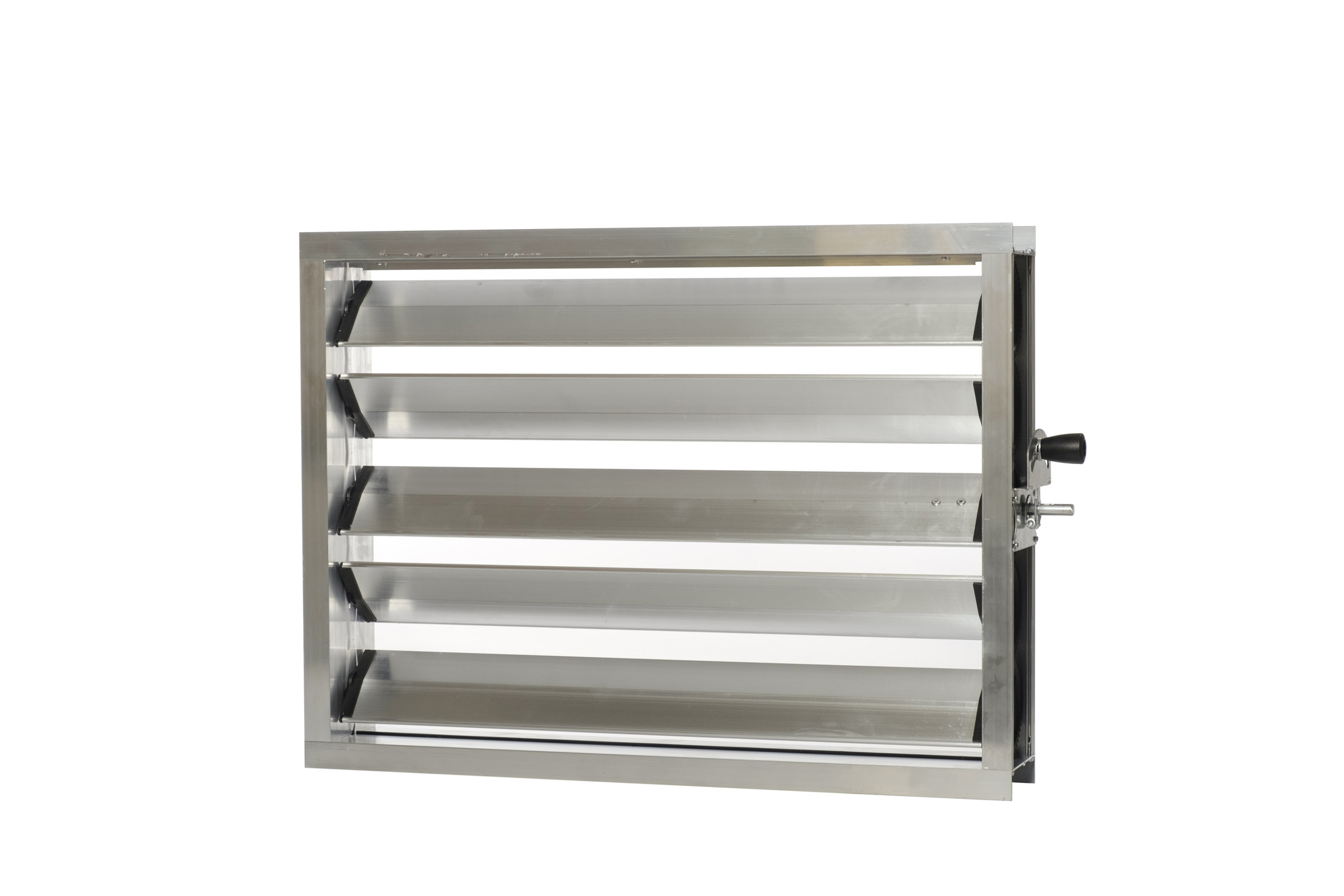 Serrande di regolazione con alette tamburate in alluminio a movimento contrapposto per mezzo di ingranaggi dentati protetti dal flusso dell’aria.