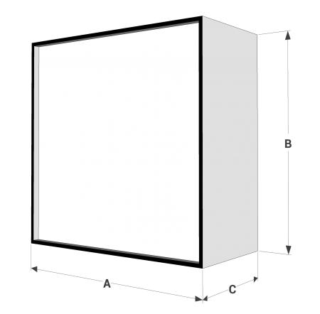 Setto filtrante in microfibra di vetro ignifuga idrorepellente con separatori in materiale plastico e guarnizione poliuretanica/neoprene su un lato.
