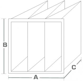 | A x B x C | EN779:2012 | ISO EN16890 | m3/h | m² | Pa | ||