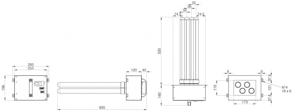 | duct 70MIC4F | Dispositivo di sanificazione dell'aria e delle superfici interne delle condotte per una portata fino a 4000 m3/h | a.r. |