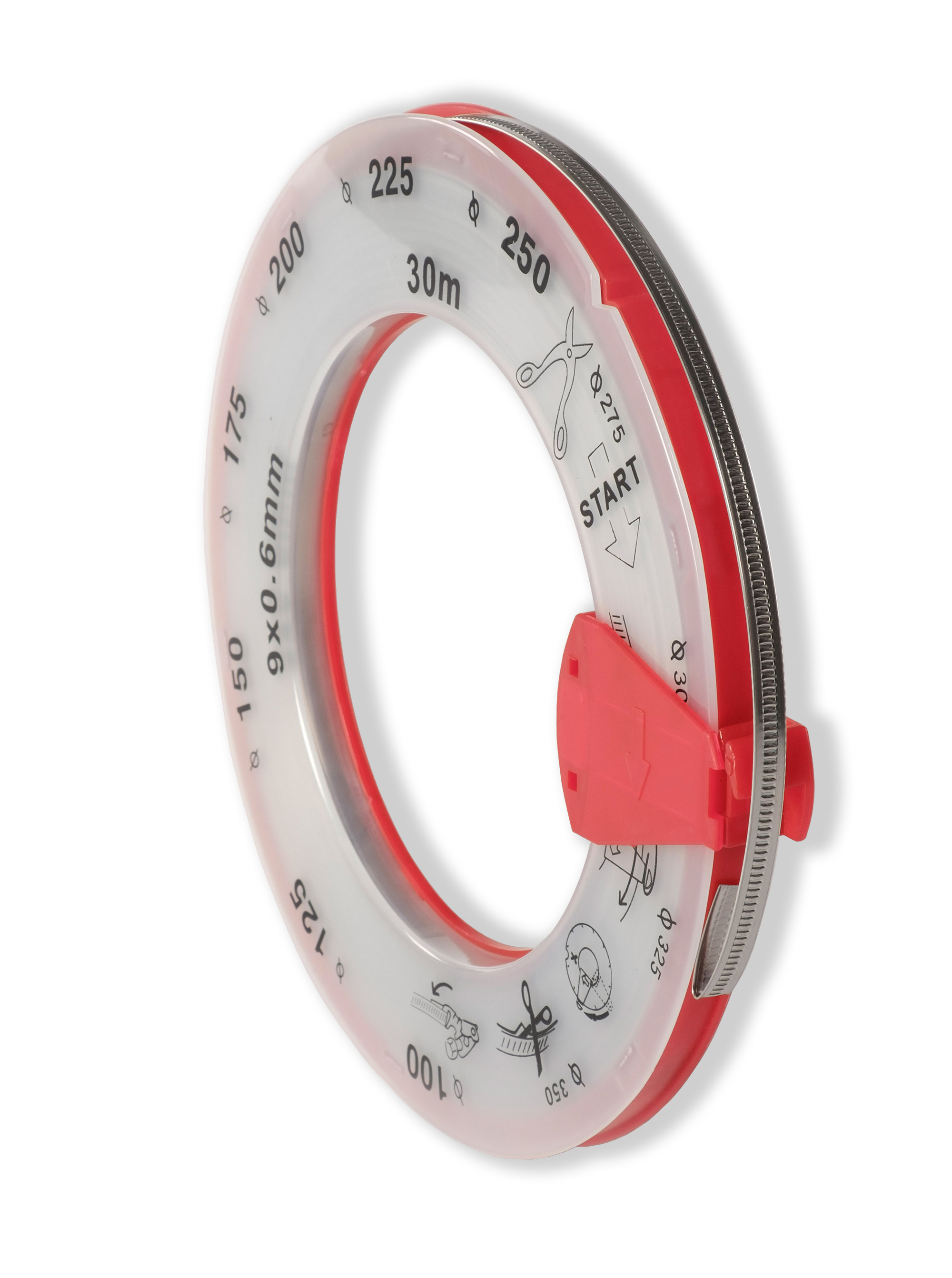 Confezione: contenitore in plastica contenente 30 m di nastro stampato