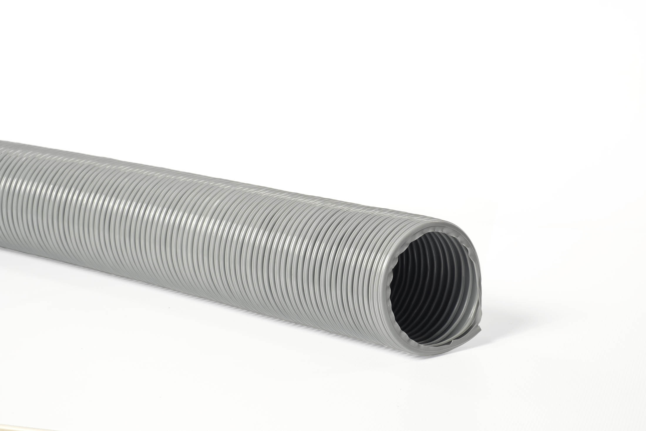 Tubo flessibile realizzato con una speciale foglia di PVC morbido ed autoestinguente, spirale in filo d’acciaio armonico incorporata.