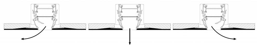 Diffusori lineari a scomparsa per impianti vmc con una feritoia da 30 mm con profilo aerodinamico in alluminio e deflettori regolabili, per un ottimale controllo del lancio dell’aria.