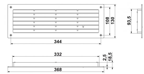 Griglia di transito per montaggio su porte bagno, cucina, ecc. Spessore minimo della porta 32mm.