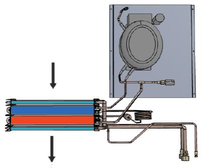 Rinnovo + Deumidifica: L'unità condensa parzialmente in aria e parzialmente in acqua tramite il condensatore a piastre, ottenendo aria deumidificata;