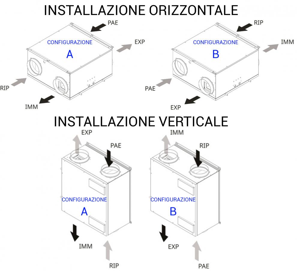 E’ inoltre possibile acquistare il KIT PRESE ESTERNE necessario per realizzare direttamente sopra la cassaforma la presa aria esterna e l’espulsione aria esausta senza ausilio di ulteriori canalizzazioni.