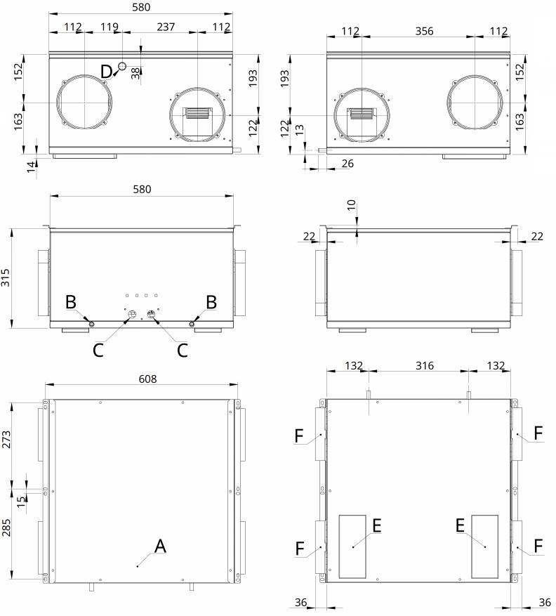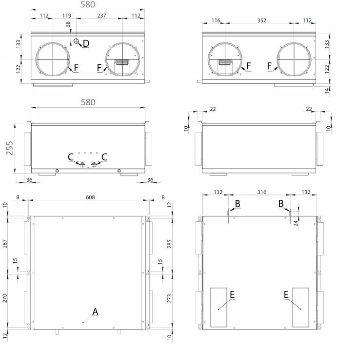 | F | Attacchi circolari Ø 160mm |