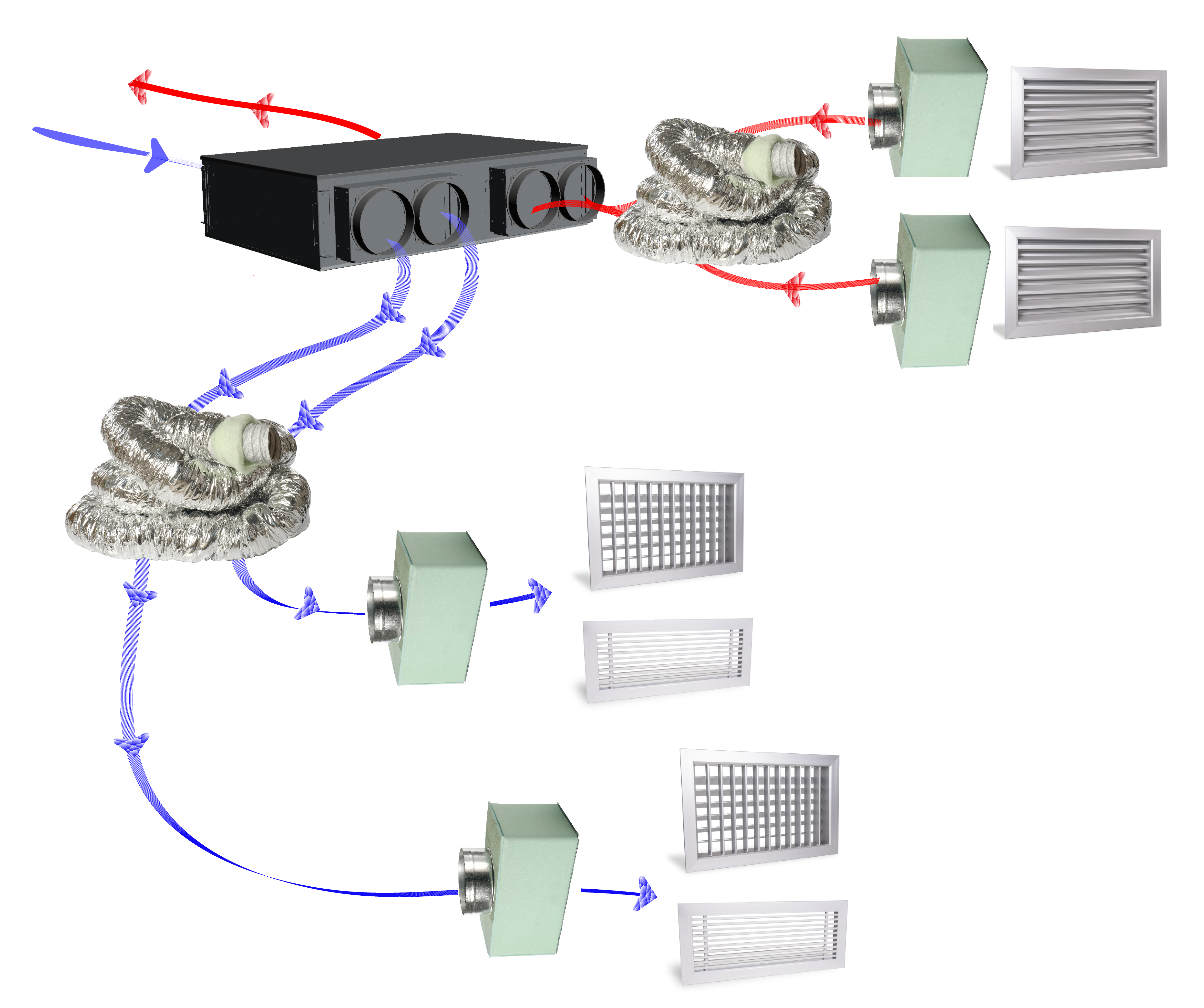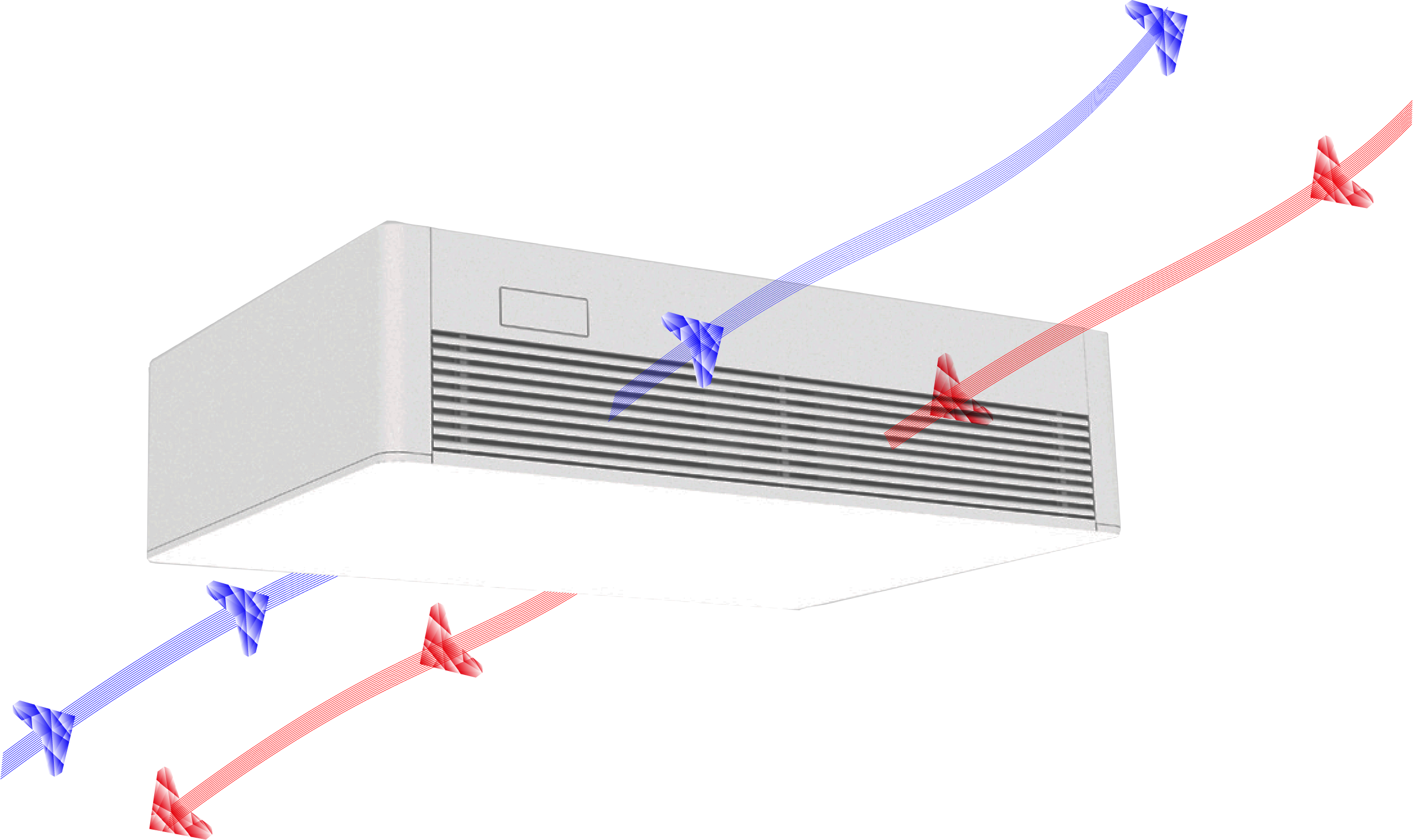 I ventilatori presenti nella versione orizzontale a soffitto sono i ventilatori brushless con motore elettronico e comando a portata costante; questa particolarità permette di mantenere inalterato nel tempo il bilanciamento tra i due flussi d’aria, massimizzando quindi il rendimento della macchina.