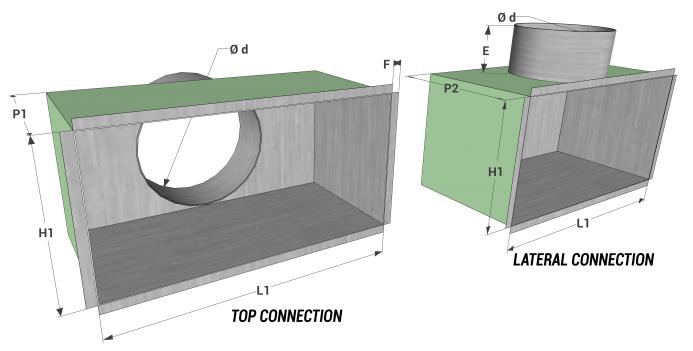 plenum with top connection | plenum with lateral connection |