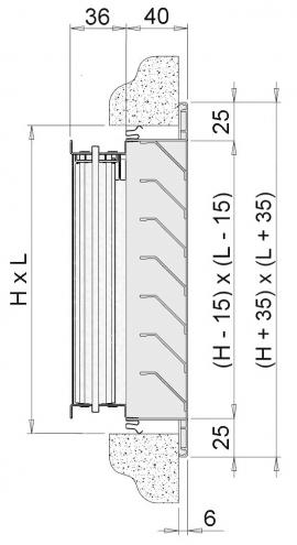 | EGA | 595 x 595 | 560 x 560 | Aluminium exhaust grille 25 mm pitch. Version for false ceiling installation with modular panels 600 mm x 600 mm. |