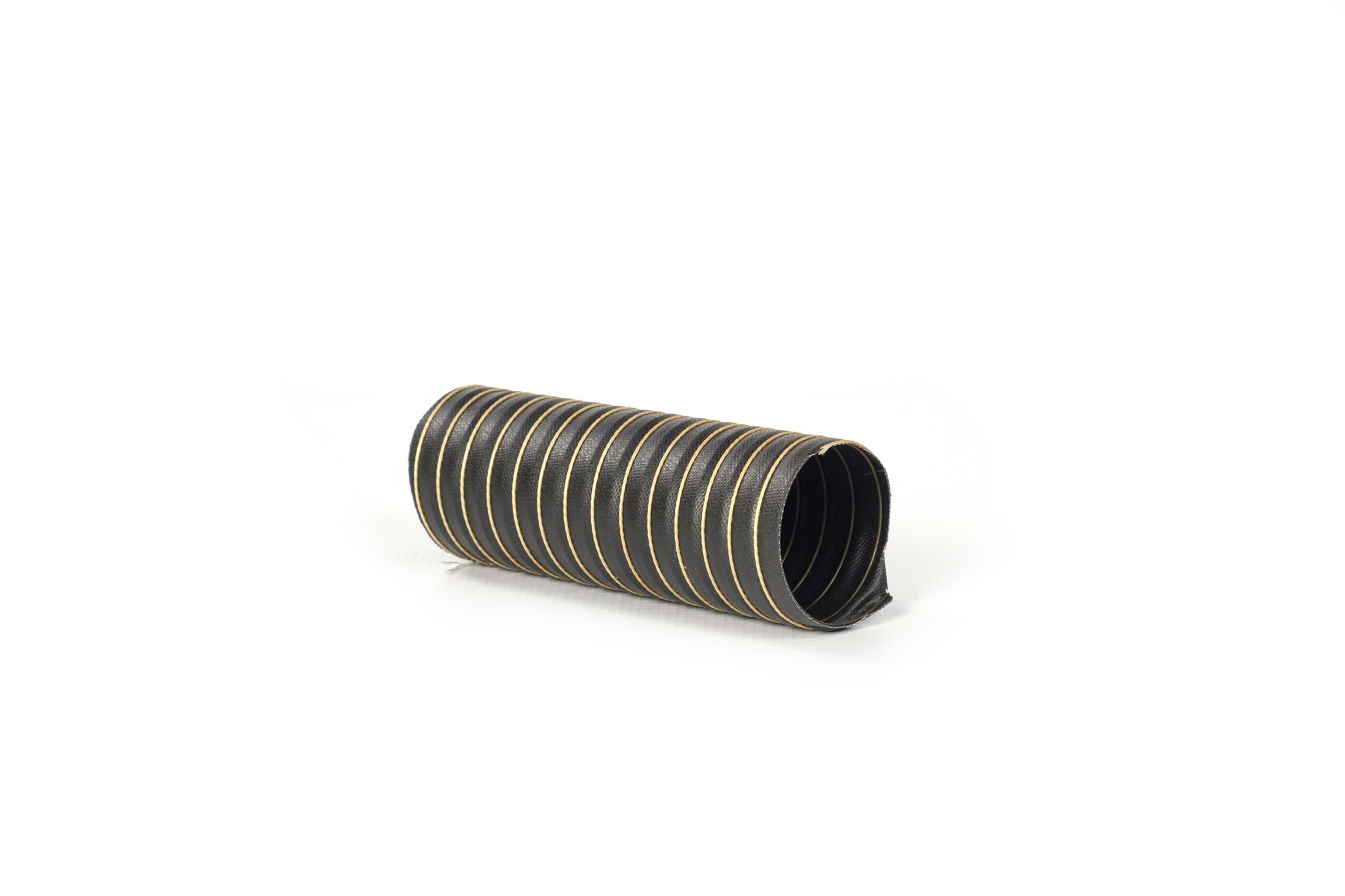 Flexible hoses made of fiberglass fabric coated with one layer neoprene, internal and visible spiral in copper-plated steel, external fiberglass rope.