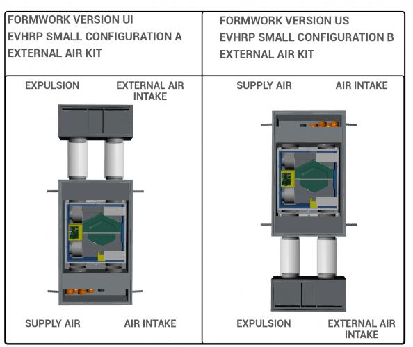 It is also possible to purchase the EXTERNAL INTAKE KIT necessary to create the external air intake and exhaust air expulsion directly above the formwork without the aid of further ducts.