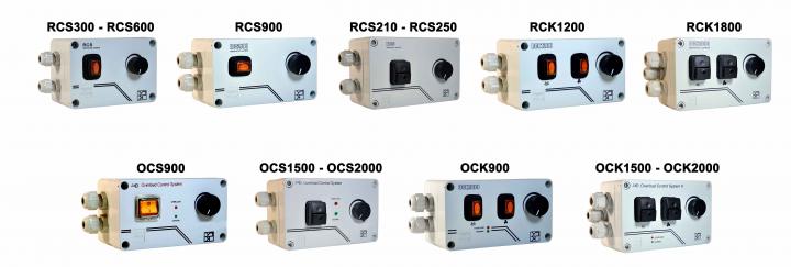 The RCK series controllers are the evolution of the RCS series implemented with a bipolar switch for controlling the neon light that is normally mounted in the hoods for convenience, they also have the following functions: "SOFT-START" - "SUR DEMARRAGE" - " MIN-MAX SETTING "-" OUTPUT FOR CONNECTION TO THE NEON LAMP "-" OUTPUT FOR INSTANT AND DELAYED GAS SOLENOID VALVE "- Filtered according to current CE regulations.