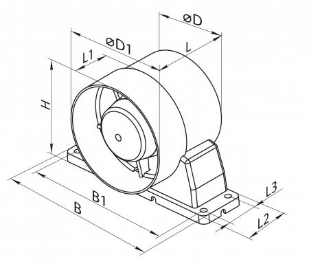 | model | Ø D | Ø D1 | B | B1 | H | L | L1 | L2 | L3 |