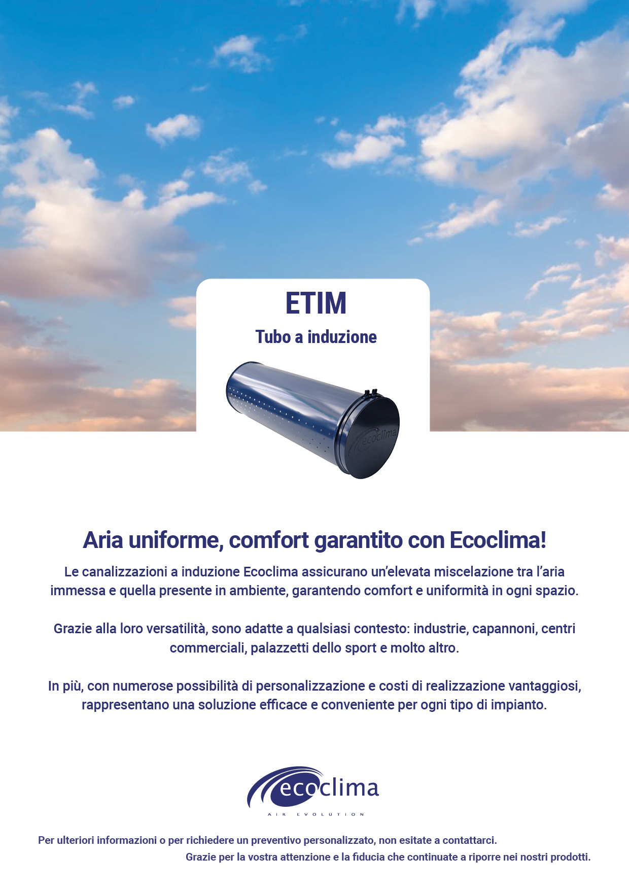 Il tubo a induzione ETIM di Ecoclima è progettato per garantire un flusso d’aria equilibrato ed efficiente, migliorando il comfort negli ambienti senza compromessi.